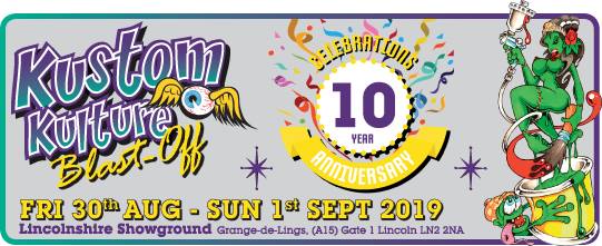 Saturday 30th August - Sunday 1st September 2019 - KUSTOM KULTURE BLASTOFF 10 - Event at Lincolnshire Showground, Grange-de-Lings, (A15) Gate 1, Lincoln, LN2 2NA.