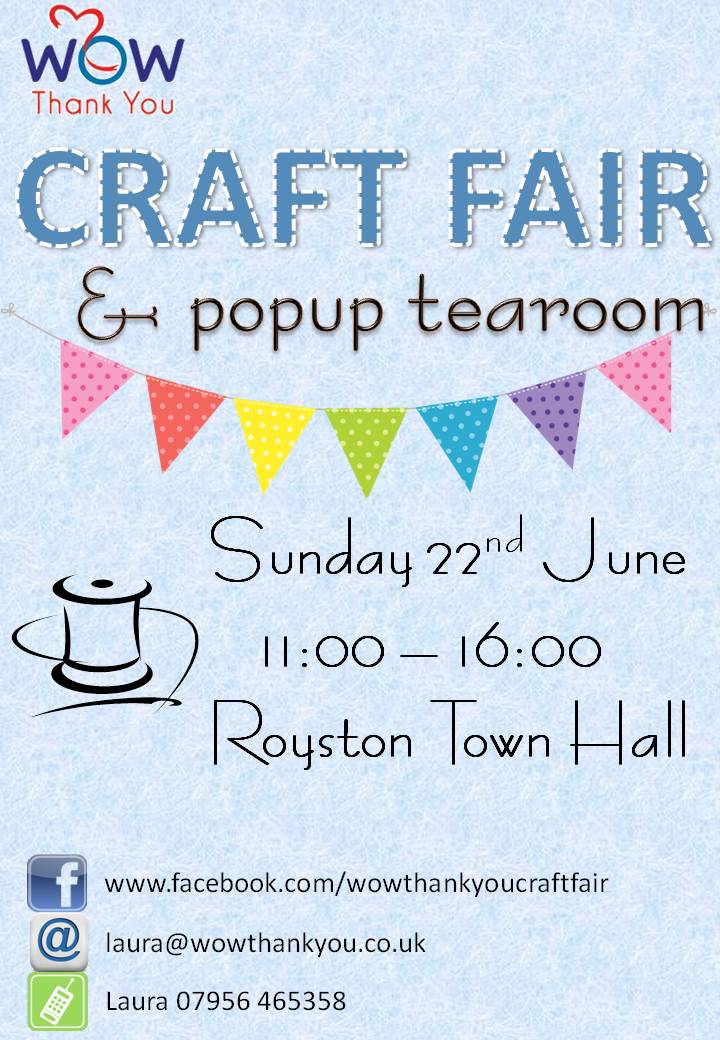Sunday 22nd June 2014. 11:00 - 16:00 - WowThankYou Craft Fair & Pop Up Tea Room - Royston Town Hall, Melbourn Street, Royston, Hertfordshire, SG8 7DA